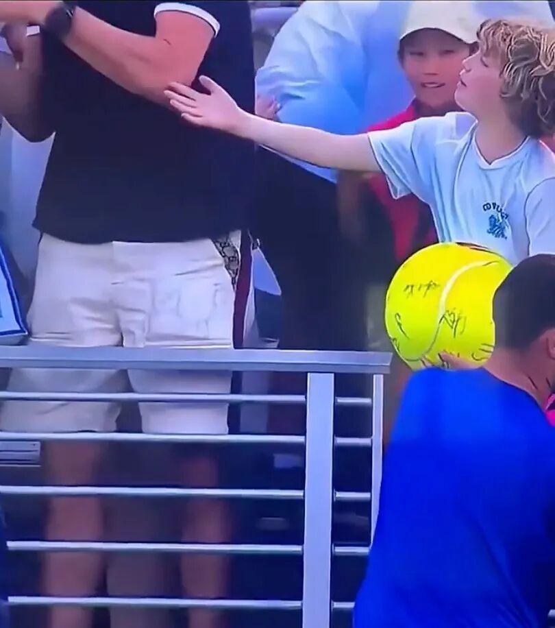 比赛结束后,迈赫扎克当场摘下头戴的帽子,想递给观众席里的小球迷布洛克(Brock)。